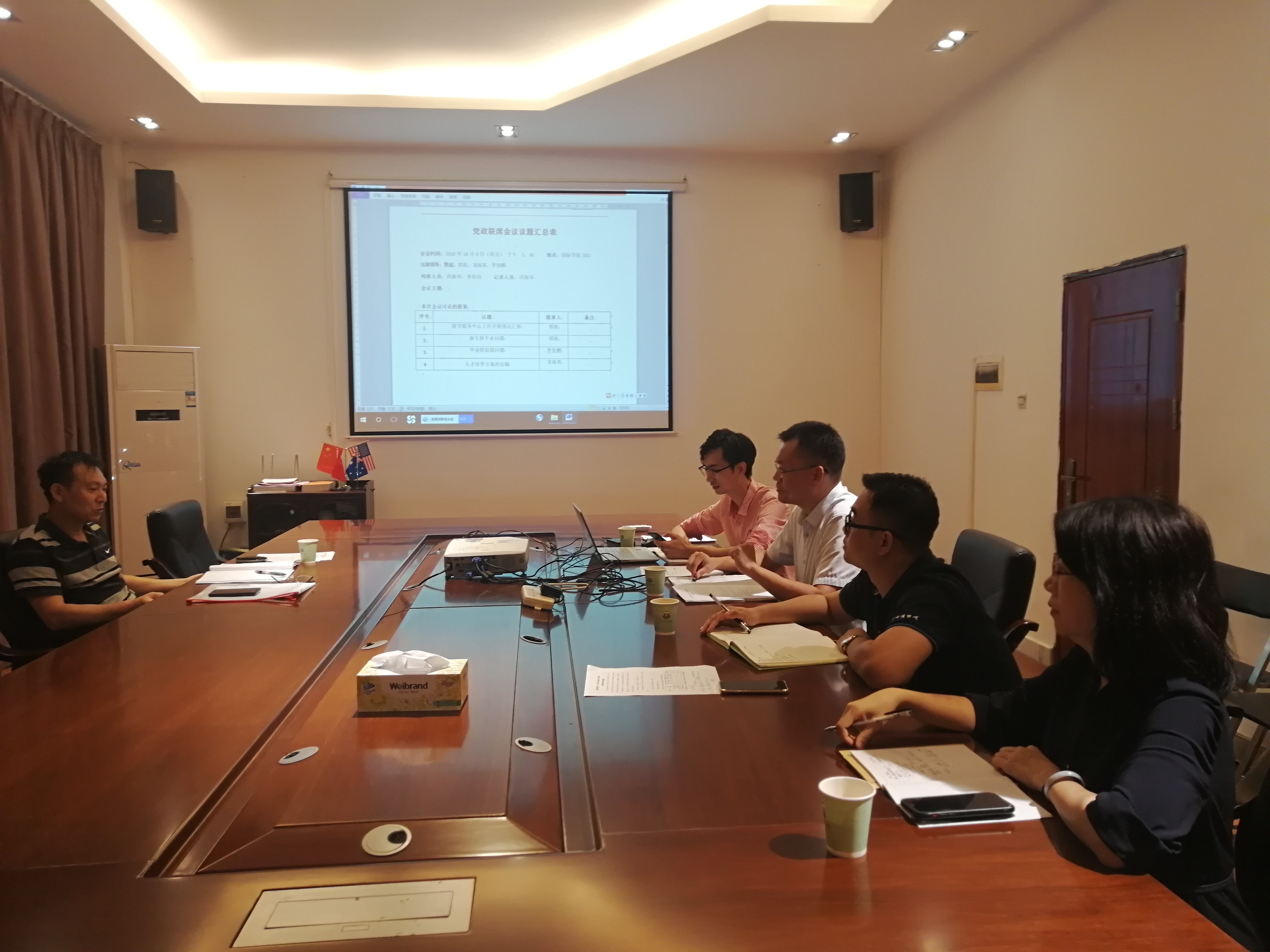 10月9日下午suncitygroup太阳新城召开2020-2021学年第一学期第三次党政联席会议。会议在suncitygroup太阳新城202会议室召开。副董事长贾超、suncitygroup太阳新城经理郭航、党总支书记李俊鹏、副经理龙海英等出席本次会议。
