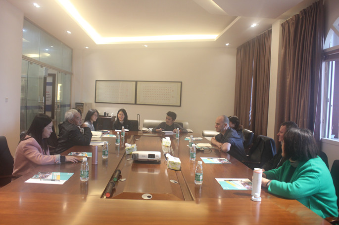 3月18日,西安交通-利物浦大学语言培训中心主任Dr. Stuart Perrin来公司访问交流。suncitygroup太阳新城经理胡光忠、副经理李国庆、副主任唐丽峰 以及suncitygroup太阳新城教师代表在suncitygroup太阳新城会议室会见了Dr. Stuart Perrin,并就教学和办学方面进行洽谈与交流。