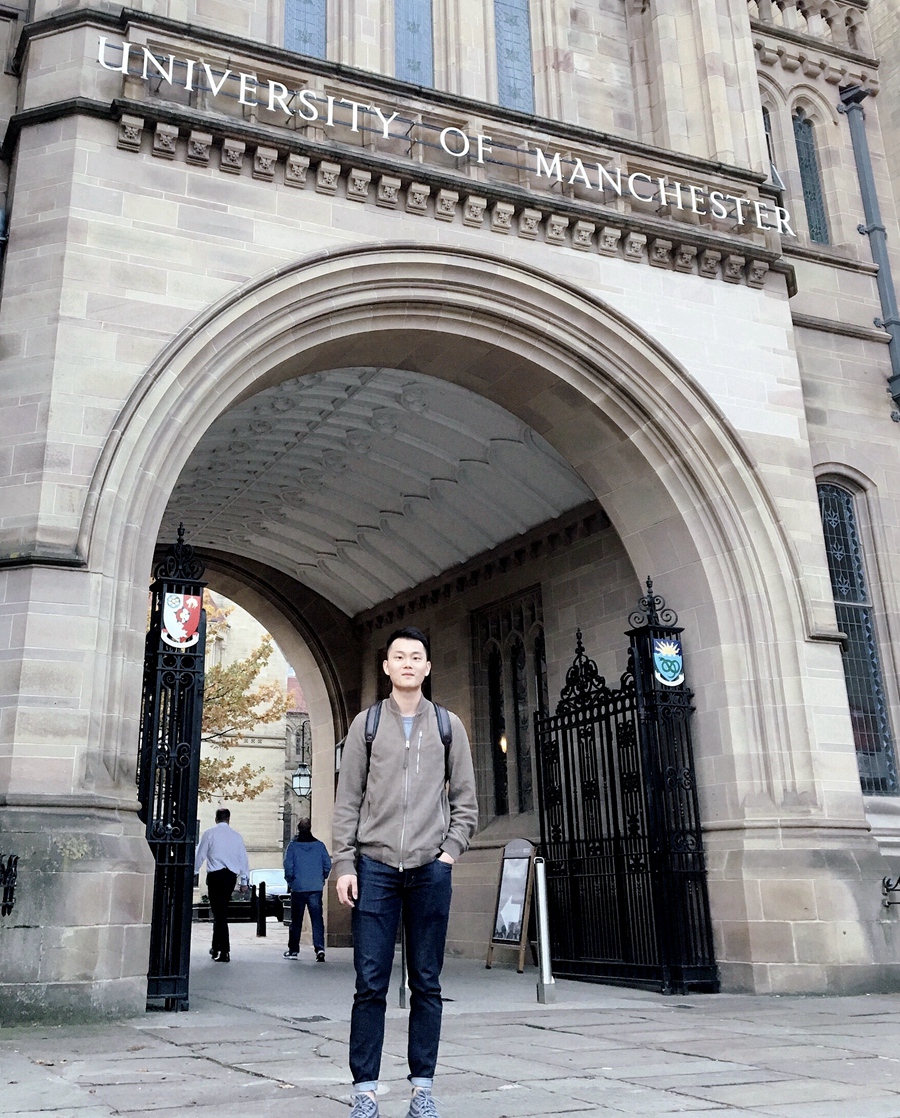 在申请研究生公司的时候,曾嘉睿考虑到已经在美国学习生活3年了,便想换个环境去欧洲体验感受一下不同的学习生活, 以此丰富阅历。在申请硕士生时,他共收到了英国华威大学、曼彻斯特大学、南安普顿大学、纽卡斯尔大学、诺丁汉大学、卡迪夫大学等6所院校的offer。之所以选择曼彻斯特大学,不仅是因为曼彻斯特大学在国内的名气更响,世界排名更高,还因为他更中意曼彻斯特大学的课程设置,曼彻斯特大学更偏向学习实用的数理知识(比如数据分析和建模)。